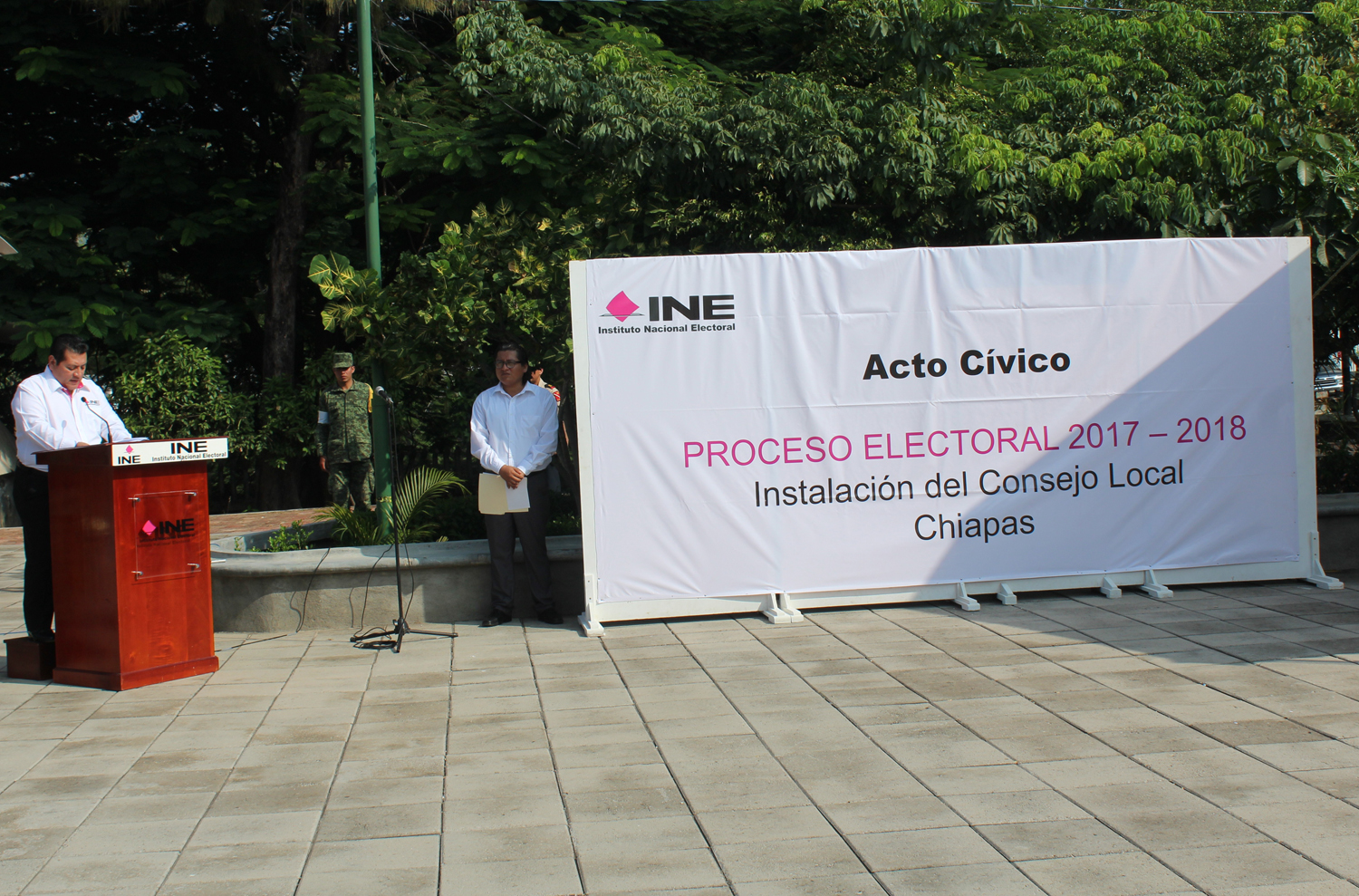 Tuxtla Gutiérrez, Chiapas, 01 de noviembre de 2017.- El maestro Mauricio Gordillo Hernández, Magistrado Presidente del Tribunal Electoral del Estado de Chiapas (TEECH), asistió al Acto Cívico de la Instalación del Consejo Local del Instituto Nacional Electoral (INE) para el desarrollo de las actividades organizativas del Proceso Electoral Federal en la entidad, con el propósito de que el próximo 1 de julio de 2018 las y los chiapanecos ejerzan su derecho a votar y ser votado.