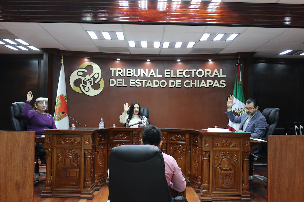 Tuxtla Gutiérrez, Chiapas, 12 de febrero de 2021.- El Pleno del Tribunal Electoral del Estado de Chiapas (TEECH), en sesión pública presencial sin audiencia, inaplicó lo dispuesto en el artículo 39, fracción VI, de la Ley de Desarrollo Constitucional en Materia de Gobierno y Administración Municipal del Estado de Chiapas, a favor de Eulalia López Gutiérrez, en su calidad de ciudadana chiapaneca, y ordenó al Instituto de Elecciones y Participación Ciudadana (IEPC) que en caso que la actora acuda a solicitar su registro para contender por el cargo de presidenta municipal de Totolapa, Chiapas, deberá verificar el cumplimiento de sus requisitos de elegibilidad contemplados en el Código de Elecciones y Participación Ciudadana.
