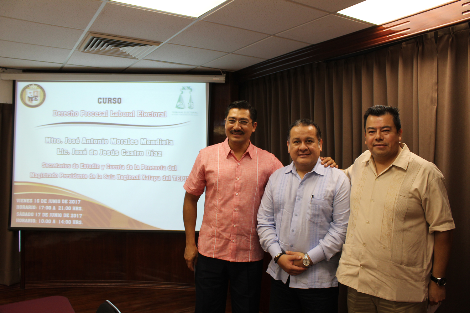 En ese sentido, el Tribunal Electoral del Estado de Chiapas tiene el firme compromiso de estar actualizado en las materias de su competencia, la electoral y laboral, mediante la implementación de capacitación continua, razón por la cual en coordinación con la Sala Regional Xalapa se organizó este curso, impartido por los Maestros José Antonio Morales Mendieta y José de Jesús Castro Díaz, Secretarios de Estudio y Cuenta de la Ponencia del Magistrado Presidente de dicha Sala, Adín Antonio de León Gálvez.