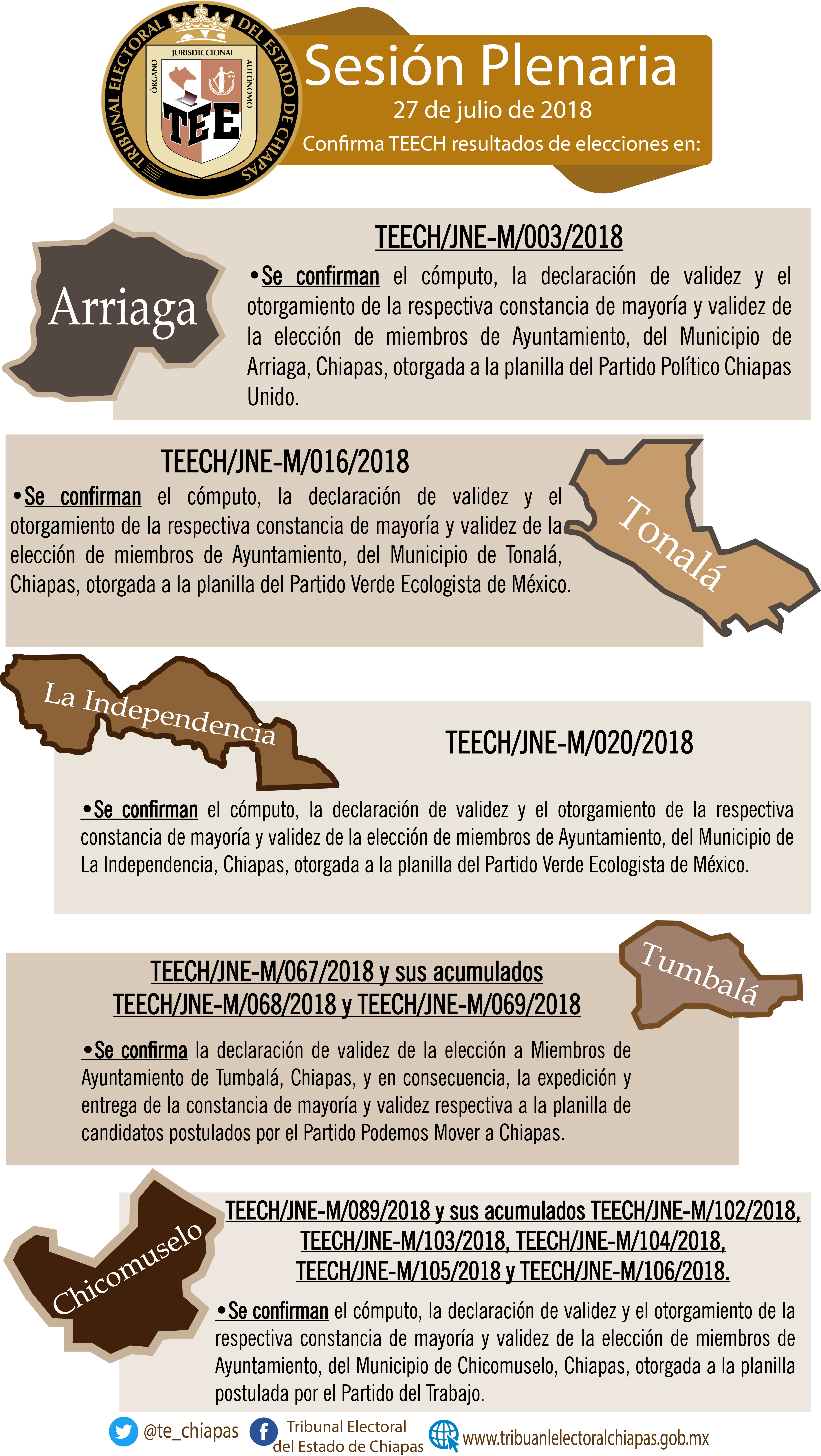 Confirma TEECH resultados de elecciones en Arriaga, Tonalá, La Independencia, Tumbalá y Chicomuselo